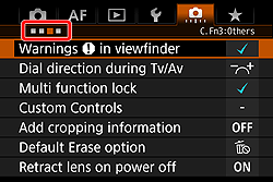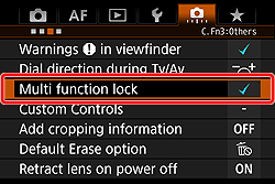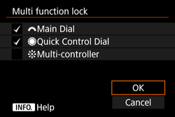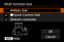 The Main Dial, Quick Control Dial, Multi-controller, and AF area selection lever settings cannot be changed (EOS 5DS / EOS 5DS R)