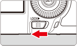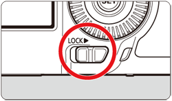 ] switch is set to the right and you try to use one of the locked camera controls, [L] will be displayed in the viewfinder and on the LCD panel. On the shooting settings display, [LOCK] will be displayed. - By default, when locked, the [