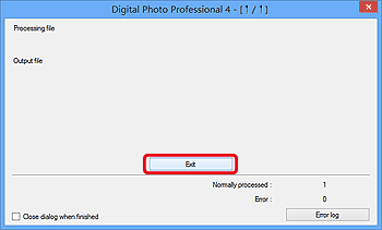 6. To complete RAW processing and saving operations, click [Exit].