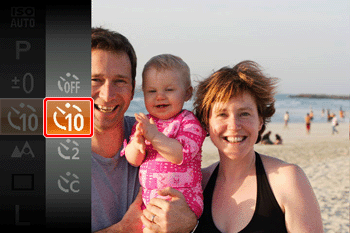 With the self-timer, you can include yourself in group photos or other timed shots. The camera will shoot about 10 seconds after you press the shutter button.