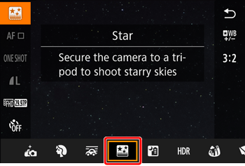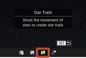: Star Trails] from the options appearing on the bottom of the screen, and then press the [