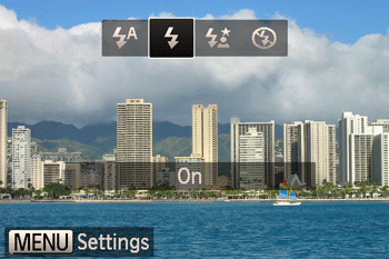 ] button to choose a flash mode and then press the [