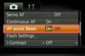 - Set the [AF-assist Beam] to [On].