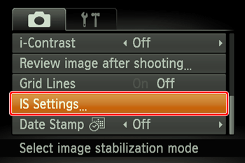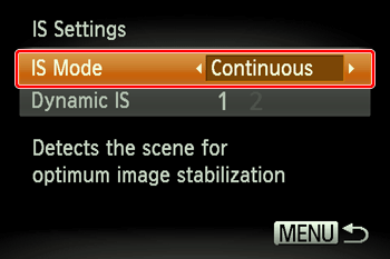 ] buttons and choose [IS Settings], then choose [Continuous] in [IS Mode] by pressing the [