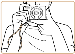 - When shooting, keep your arms close to your body and hold the camera securely to prevent it from moving. If you have raised the flash, do not rest your fingers on it.
