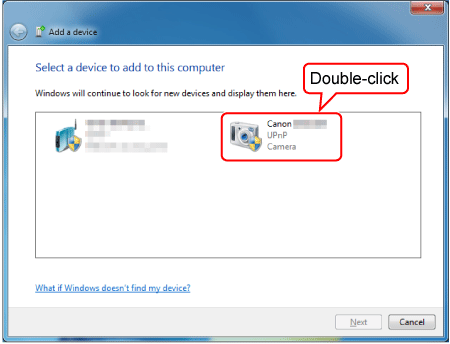 23. The camera’s icon will be displayed in the [Add a device] screen. Double-click the icon to begin driver installation.