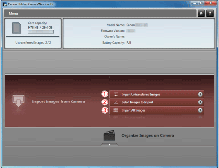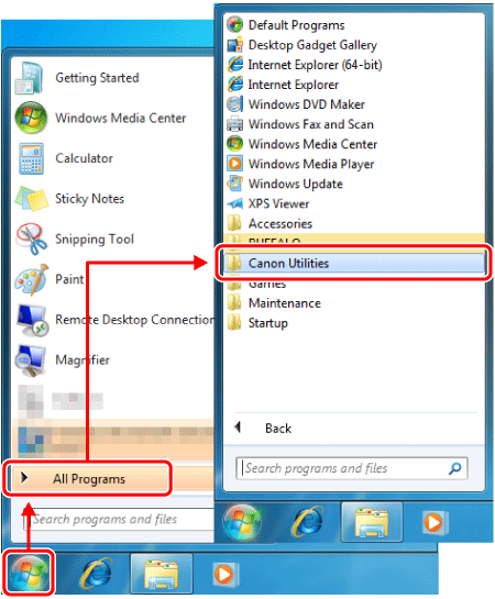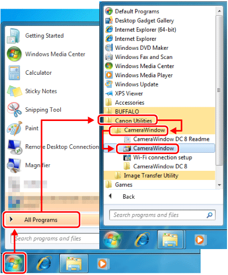 ), and then select [All Programs] > [Canon Utilities] >[CameraWindow] > [CameraWindow].