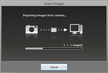 5. The following window will appear, and the computer will start to transfer images from the camera.