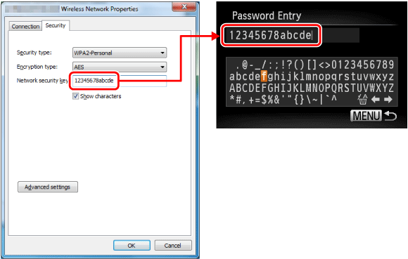 13. Enter the password displayed in the [Network security key]. (See the password example below).