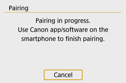 When a message indicating the connection is being established is displayed on the camera’s LCD monitor, move the smartphone away from the camera.
