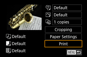 - The camera returns to the print setting screen.