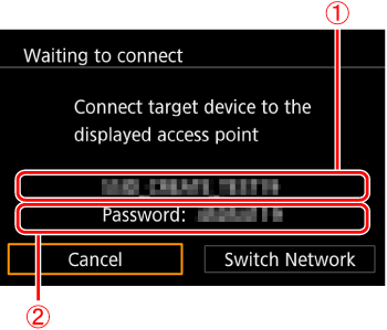 - Follow these instructions when using the camera as an access point. To connect using another access point, please refer to the camera’s "Help Guide".