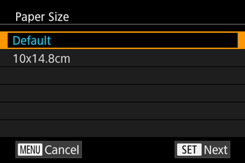 - The screen for setting the paper size appears.