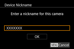 When making Wi-Fi settings for the first time, a screen will appear for you to register a nickname for the camera.