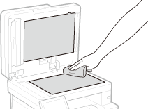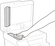 Regularly wipe off the dust from the platen glass and the underside of the feeder to prevent smudges to be printed on originals or printouts.