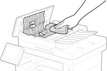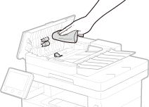 Graphite powder or dust on the rollers inside the feeder or on the document feed scanning area may cause smudges to appear on printouts. If this occurs or if a paper jam occurs frequently, clean the feeder. If the problem persists after cleaning the feeder, perform automatic feeder cleaning.