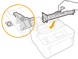 - Do not shake or tilt the toner cartridge. Also, make sure to avoid applying shocks to the toner cartridge, such as by hitting it against something. Doing so may cause the toner left in the toner cartridge to leak. Remove the toner cartridge gently at the same angle as the slot.