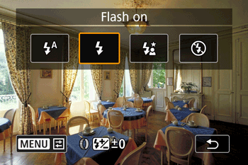 : Program AE ]. - You may not be able to set the flash setting to [ Flash On ] depending on the Shooting mode.