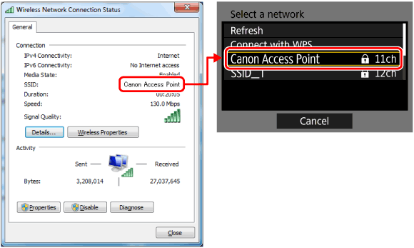 > dial to select the SSID that matches with the one shown in [SSID:], and then press <