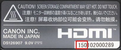 หมายเลขประจำเครื่อง (Serial Number) ที่ถูกต้องเป็นหมายเลข 12 หลักซึ่งพิมพ์อยู่บนป้ายที่ติดอยู่บนตัวกล้อง สามารถมองเห็นได้เมื่อเปิดหน้าจอ