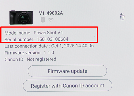 กล้องดิจิทัลคอมแพค 'PowerShot V1' รุ่นที่ได้รับผลกระทบจากปัญหาที่กล่าวไว้ข้างต้น จะมีหมายเลขประจำเครื่อง (Serial Number) ที่ขึ้นต้นด้วยตัวเลข '155' และ '156'